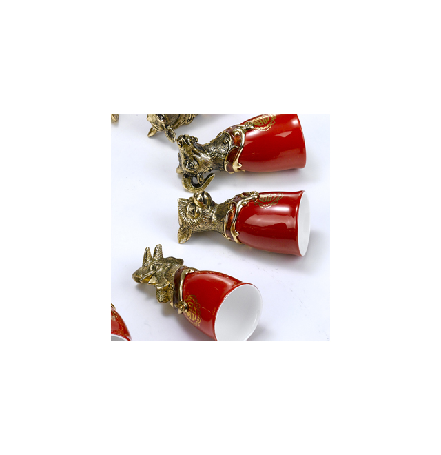 靈感來自于圓明園十二銅獸首,精選景德鎮(zhèn)陶瓷杯體,色澤純正,釉體光潔,聲響如馨;將十二生肖動物頭鑲嵌于陶瓷杯上,栩栩如生。陶瓷的溫潤與潔白,金屬的質(zhì)感與溫度,都讓優(yōu)雅格調(diào)恰到好處,卓越品位綿綿不絕。