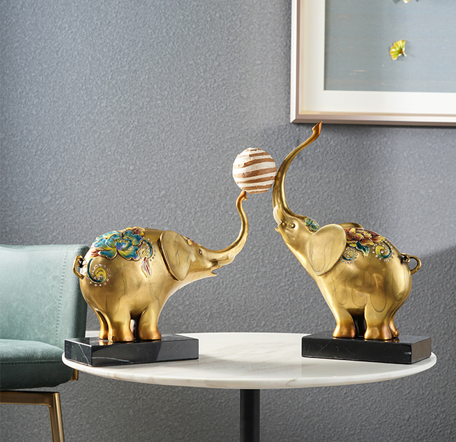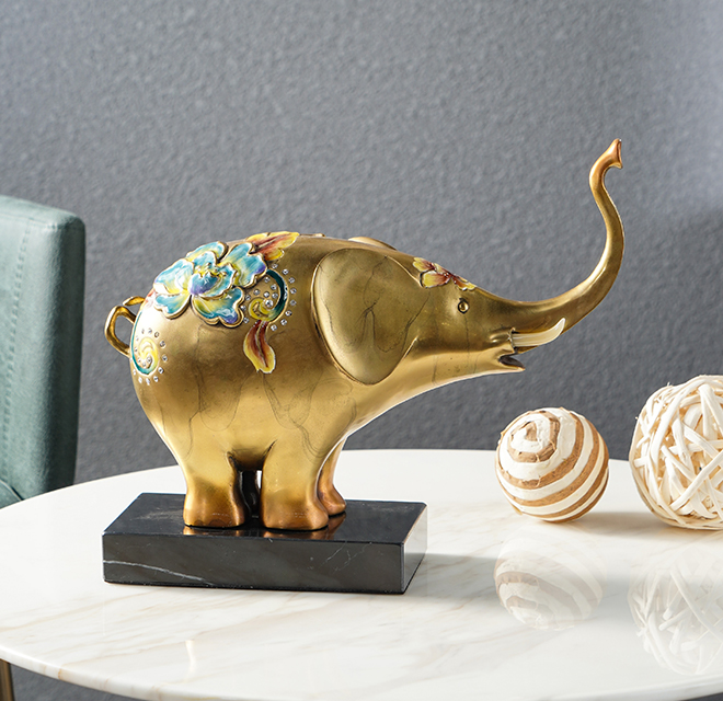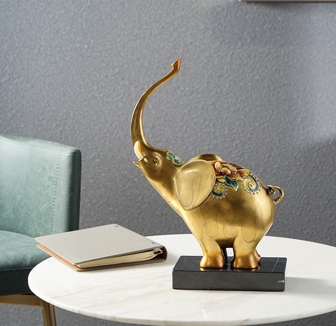 大象合攏四肢,卷揚長鼻子,獨具靈性,寓意招財進寶。象背的牡丹花預示富貴花開、平安如意。