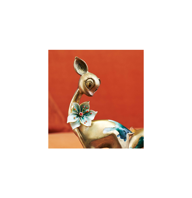 其樂融融系列是對自然生物之美的贊頌,五只形態各異的由純銅工藝鑄造的萌鹿,其中有兩兩相依深情對望的,有好奇地張望的,形成一幅其樂融融的幸福景象,象征家庭美滿、幸福快樂。小鹿身上由異形陰雕圖案裝飾和杏花點綴,鑲嵌水鉆和琺瑯彩藝術工藝令其更臻絕美,經爐火焙燒的色彩,呈現獨一無二的深邃感,且歷經時光荏苒,亙古不變